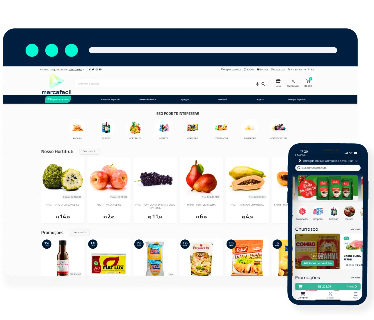 A solução de e-commerce whitelabel para o seu supermercado. Tenha um site e app personalizados com sua própria identidade visual e configurados com seu próprio domínio.